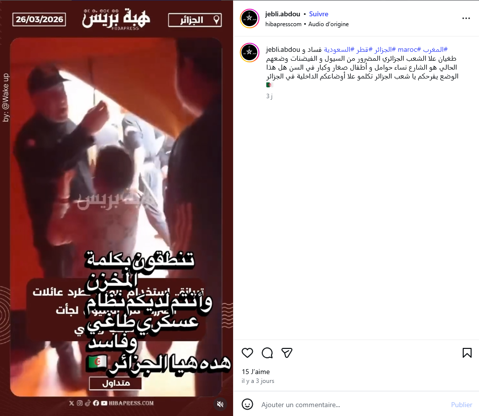 – تتبع انتشار الفيديو يُظهر أن بعض الحسابات التي روّجت له مؤخرًا تنشط خارج الجزائر، بما فيها صفحات تنطلق من المغرب، مع اعتماد نفس السردية دون تقديم أي مصدر موثوق.